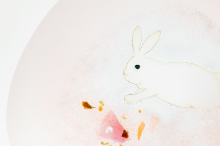お月さまをごらんなさい。うさぎがもちをついています。