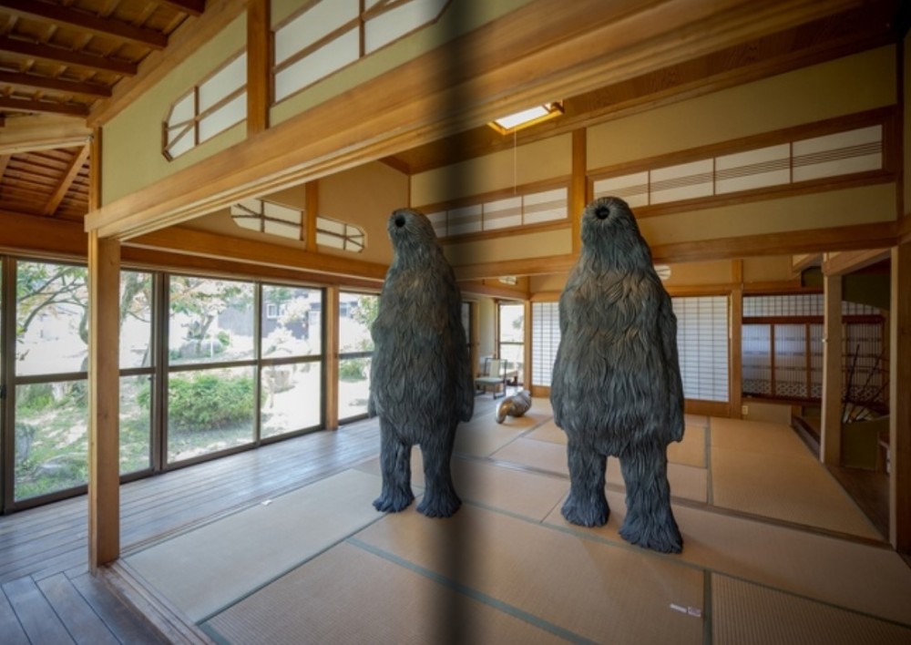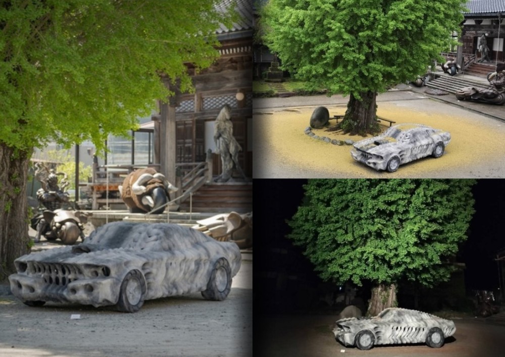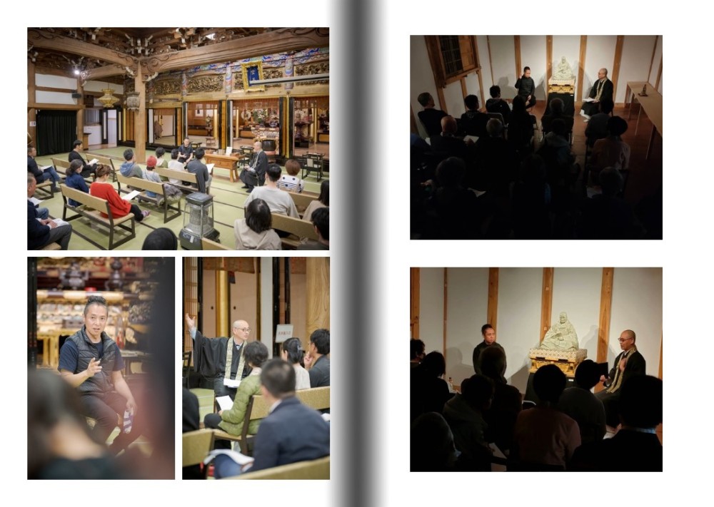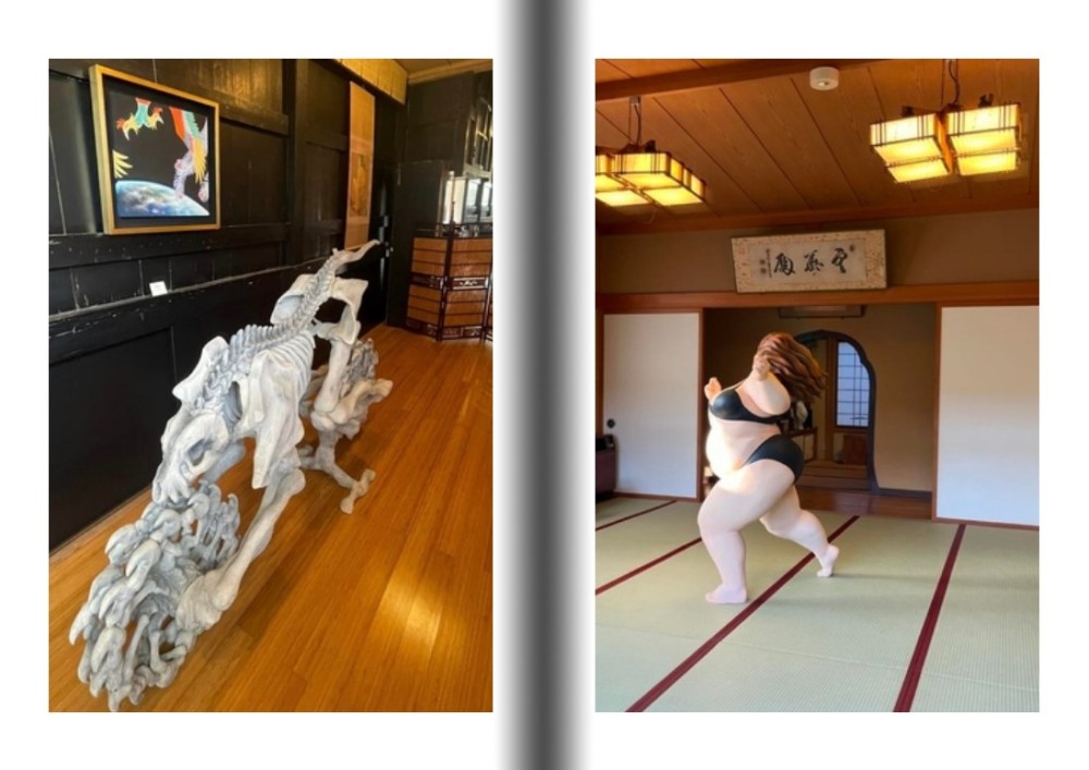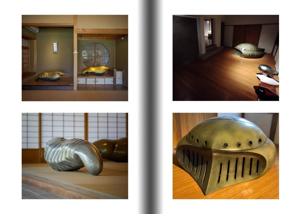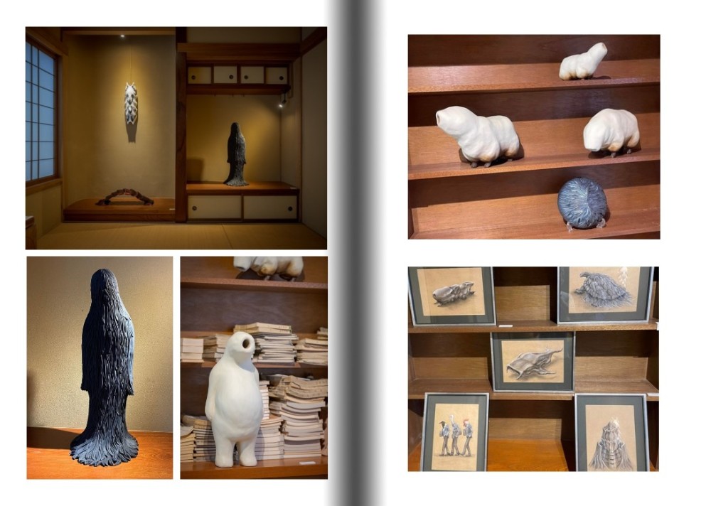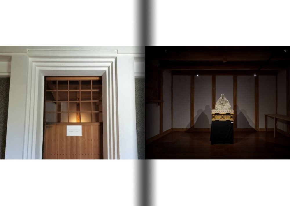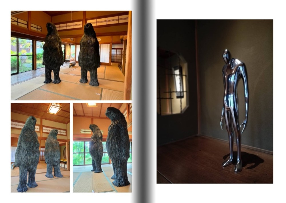 境内には大型作品が立ち並び、本堂の受付から展示会場へ。清河北斗さんの15年分の代表作が客間、裏庭、はなれ、お蔵に展示されました。今回の依頼作「愚禿-親鸞聖人像-」は1番奥のお蔵に安置し、空気が一変する空間で親鸞聖人とご対面。多くの感嘆の声が聞かれました。その一端をご覧ください。