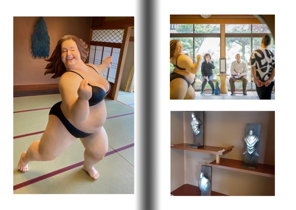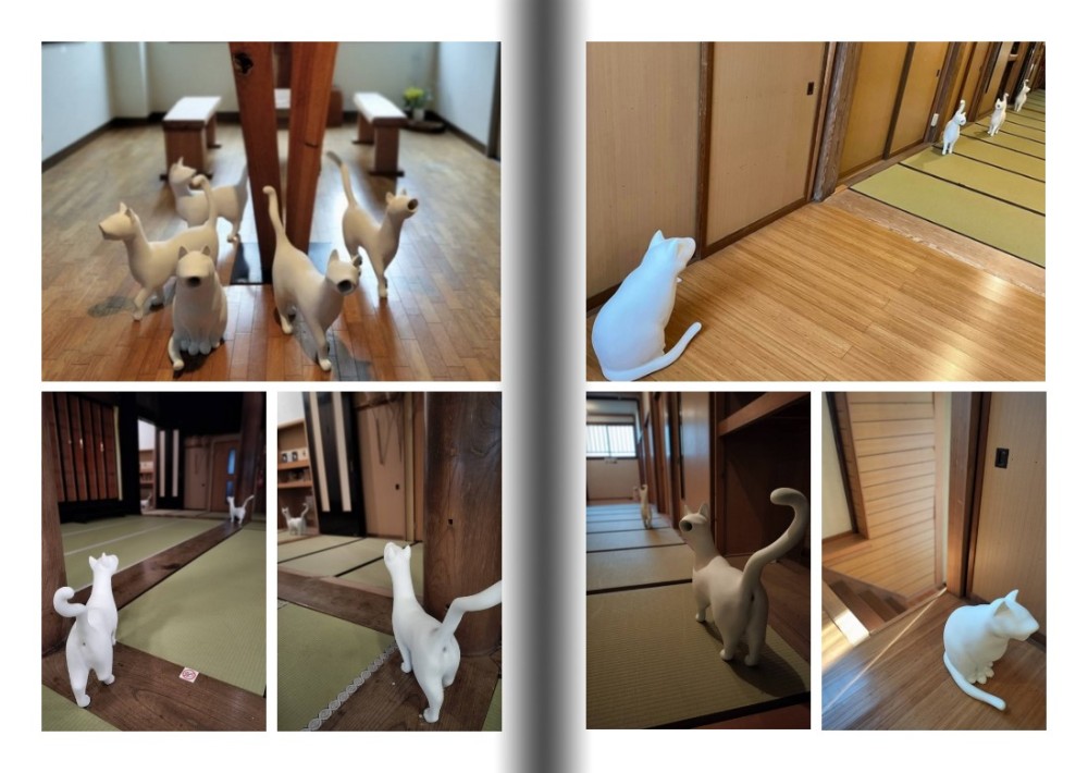 SNSの投稿で特に多かったのは、今回メインの親鸞聖人像(2024)をはじめ、大型作品の象駆輪金剛力士座像(2009)、展示室①の水着のお姉さん(2017)でした。今回の展示ではサブ的な立ち位置であった裏庭のカメや道案内のネコが多く撮られていることも興味深いです。また、展示作品に限らず、大イチョウや内陣天井画など、さまざまな場面をご覧いただきました。