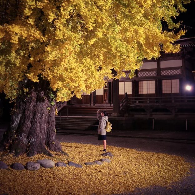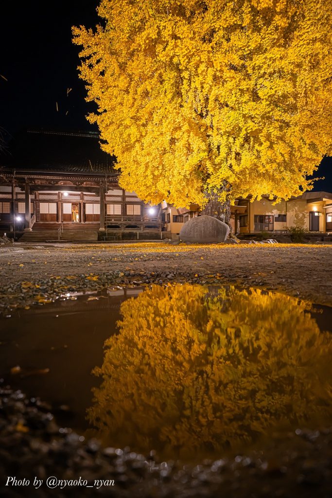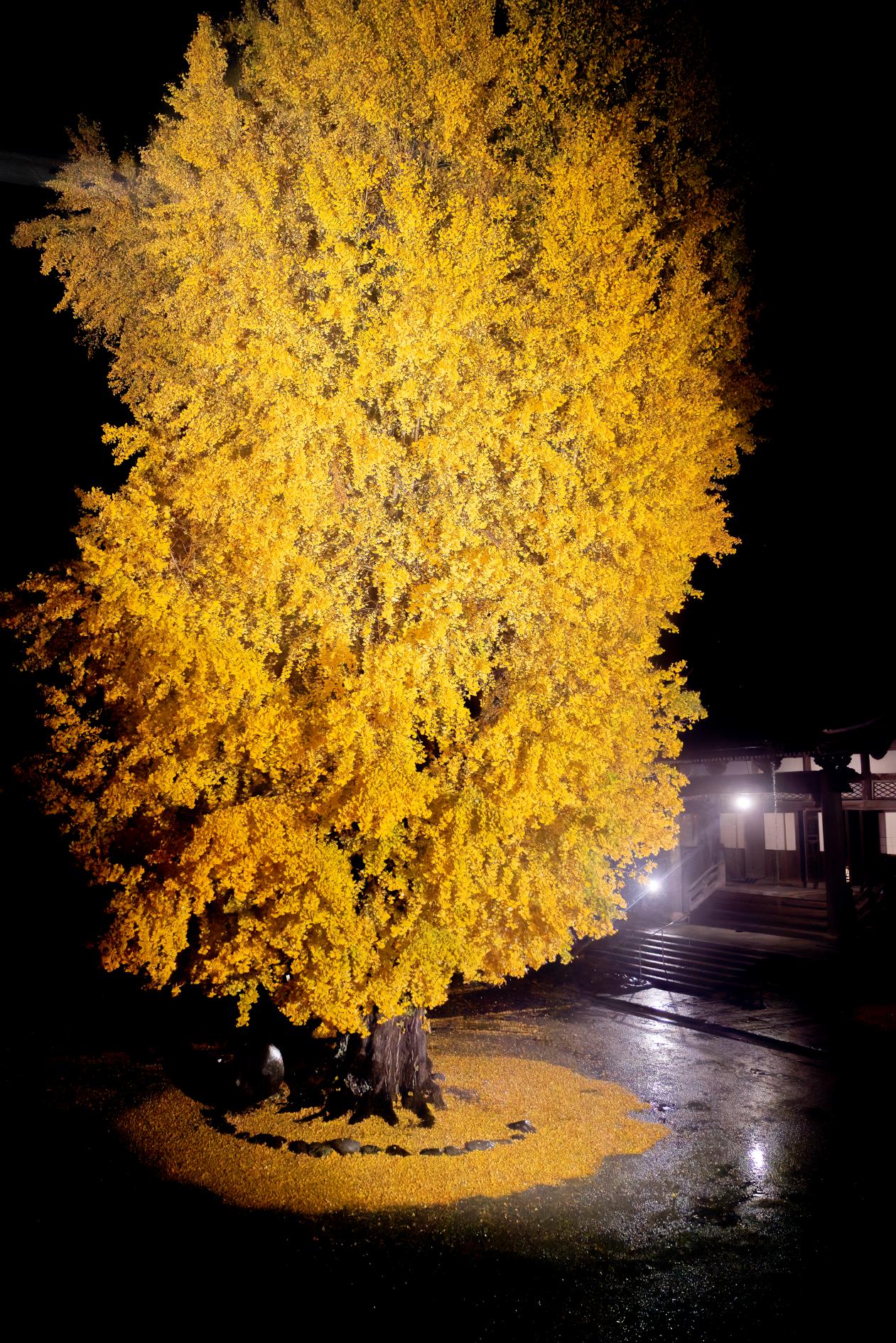 11月27日から29日までの3日間、善巧寺の大イチョウをライトアップしました。初日はゆったりと始まり、二日目はあいにくの雨となりましたが、最終日は多くの方が足を運んでくださり、寒さの中にもあたたかな空気が広がりました。