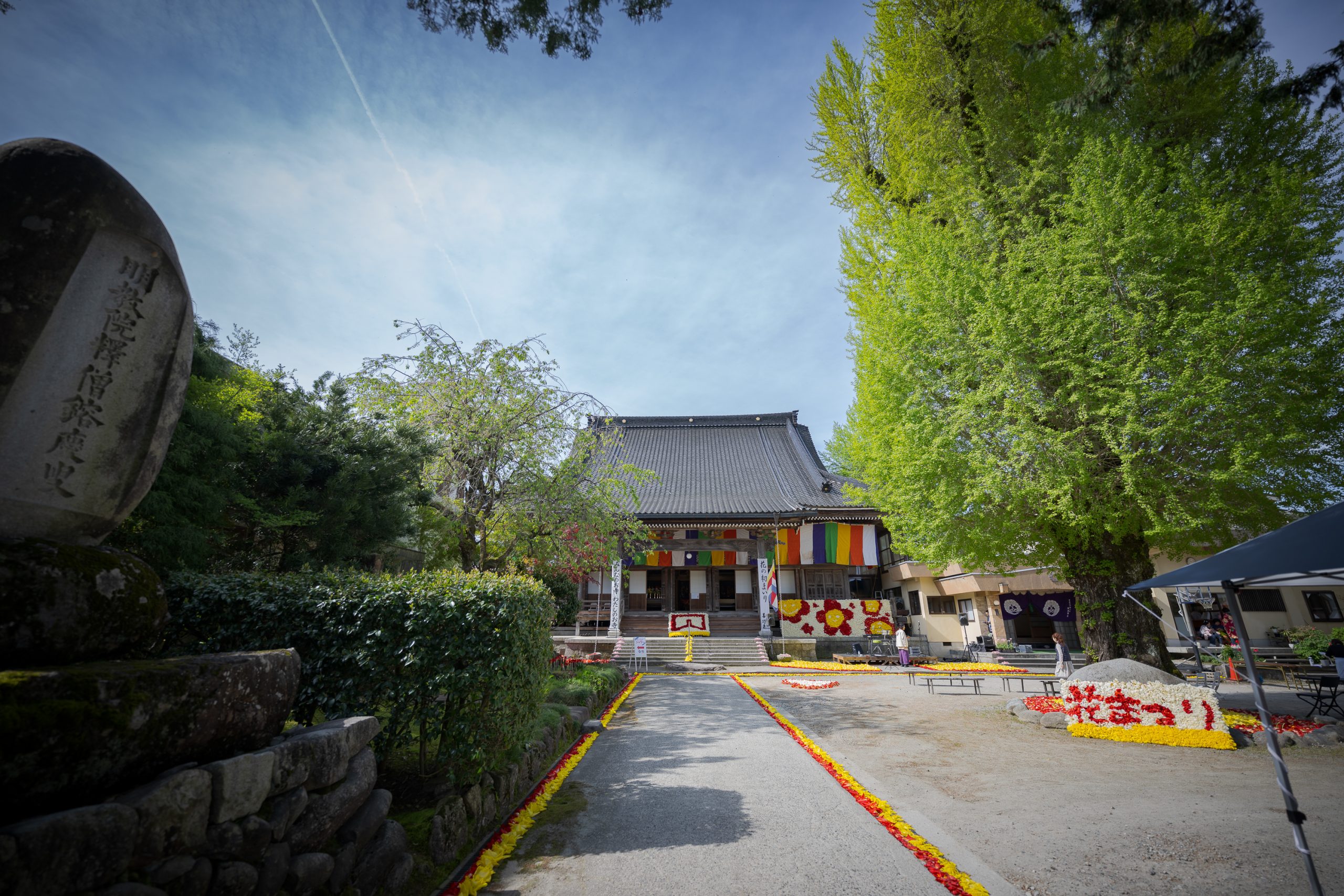 善巧寺では1977年から毎年4月下旬に「花まつり」を行っています。花まつりとはお釈迦さまの誕生をお祝いするおまつりです。その日に合わせて、赤ちゃんとこどもたちの誕生や成長を仏さまの前でお祝いする儀礼「初参式(しょさんしき)」と「七五三」を行っています。