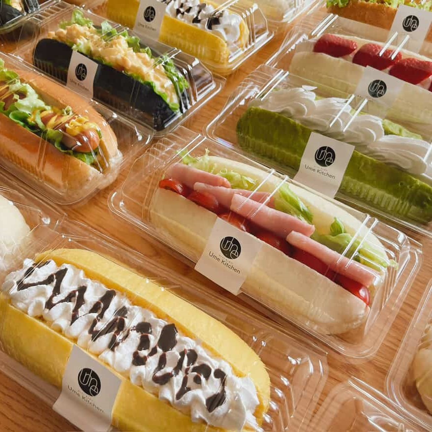ドッグパン屋。ソーセージやベーコン、いちごやあんこまで、いろんなメニューがあります。