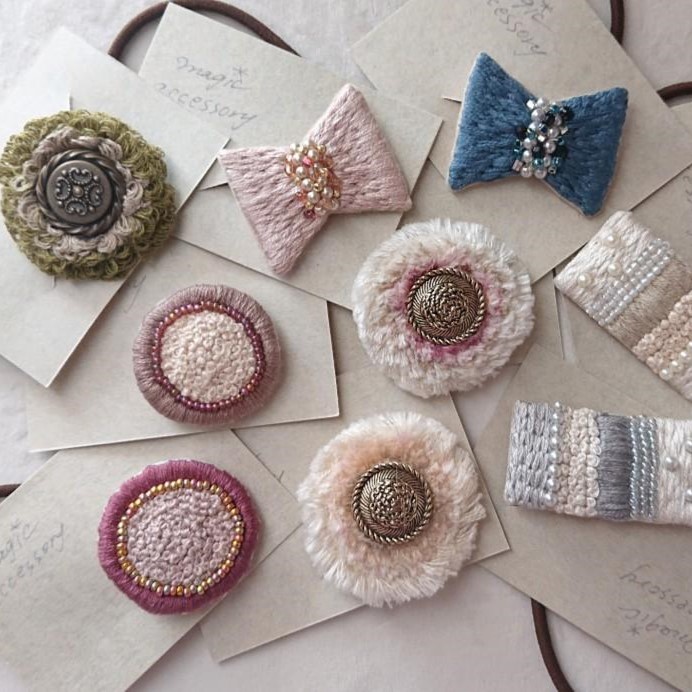 刺繍を用いた手作りアクセサリー。