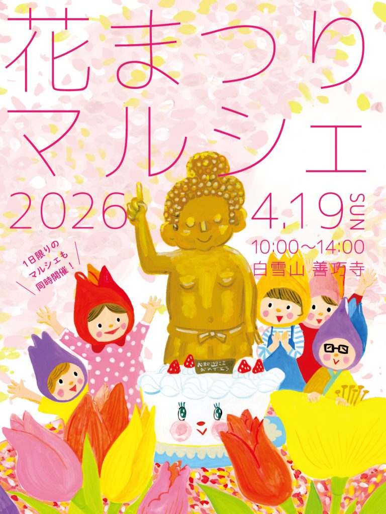 2026年4月19日(日)、善巧寺の春の境内をチューリップで彩り、素敵なお店が集まるマルシェを開催します。