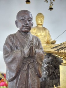 銅像はとても高価なもので、等身大の像で200~300万円、2メートルを超える像は500~600万円ほどの予算がかかる。型のあるものでそのぐらいの予算のため、型から制作する一点ものを求めた場合、その倍ほどの予算が必要になる。そんな膨大なお金がかかる事業をどのようにやっているかというと、ほとんどのお寺ではおひとり、もしくは複数名の寄贈による場合が多い。お寺においては、銅像のみならず、あらゆる仏具でも寄贈品が多く、よく見ると至る所に寄進者の名前が刻まれている。高度経済成長期に爆発的に増えた銅像は、経済的に余裕のある人だけではなく、長年コツコツと溜め込んだ貯蓄をお寺にかけたいという人が多数おられた。