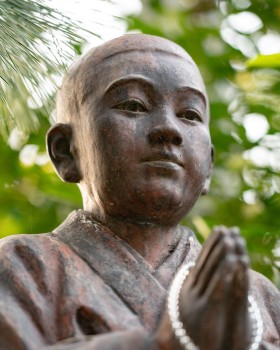 以上のように、短髪と長髪の親鸞聖人像がほぼすべてであるが、1体、得度後のツルツルの姿が存在する。