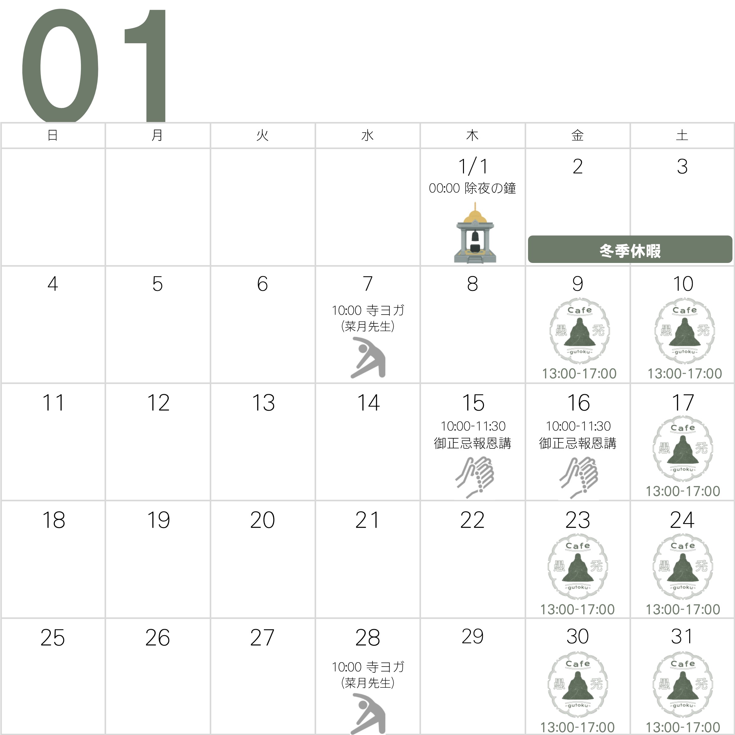 〇カフェ愚禿のオープン中(1~3月は金・土曜の13:00~17:00)は、本堂へ自由に参拝していただけますので事前連絡は必要ありません。ただしお休みの日もありますのでカレンダーをご確認ください。